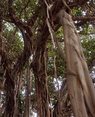 Why is the Indian fig tree with its characteristic hanging aerial roots called banyan? That’s an interesting story, which has nothing to do with its sacredness about which I contemplated in last week’s post.
