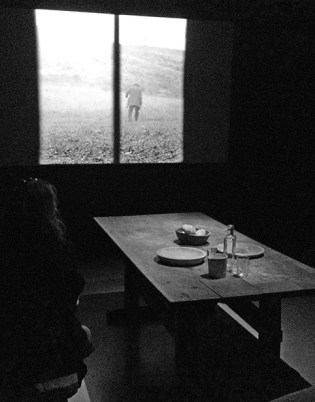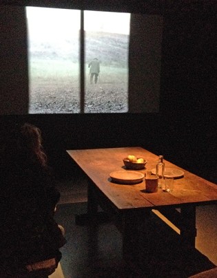 At the Béla Tarr exhibition in the EYE in Amsterdam was a room with the table from the film. On it were two big potatoes, two plates, the empty brandy bottle and glass. The table is indelibly stamped on my memory in black and white. At the exhibition it was the real thing. Unreal. In colour.