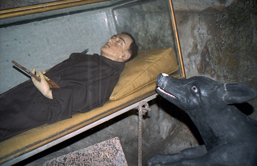 I descended the steps into a pitch-dark tomb. Groped for my camera, managed to put on the flash and took a picture. The photo shows what I couldn’t see: