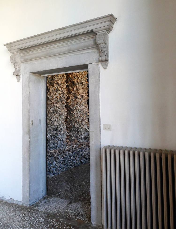 Last week we looked at hanji paper works made by Chun Kwang Young. Here we look at some more of them, but this time within the spatial context of the venue in which they are exposed. At the Venice Biennale that venue is the Palazzo Contarini Polignac. Chun’s works are still the focus of attention but the glimpse we get of the old palazzo in which they are placed gives our view the possibility to wander away, go back to them, again wander off and so forth. This affects and often enriches our perception and reflection. Showing a work of art in relation to its environment, that’s what I often like doing in my pictures.