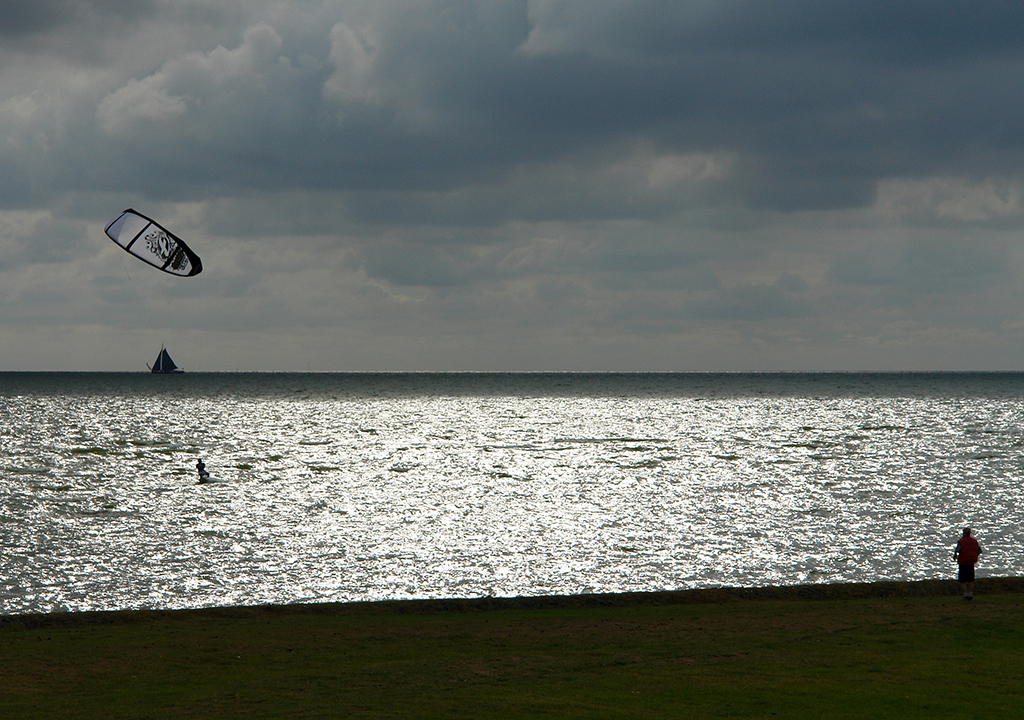 A woman stands on the shore, a man approaches on his kiteboard. Does she patiently stand by and watch, full of admiration for the man of her heart? Or does she wearily think: if you don’t come back now I’ll go and you won’t see me ever again!