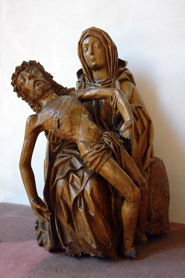In the Romanesque and Gothic churches from medieval Europe we can admire the exceptional quality of the wood carving on the choirs, choir stalls, pulpits etc. And as the second photo shows, certain statues of the Pietà – and of the Virgin Mary with or without child – belong to the greatest works of art of the time.