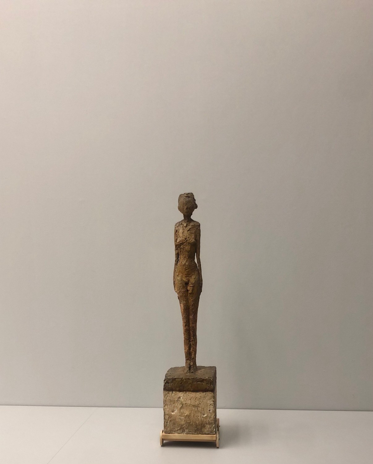 Giacometti has put her on a pedestal in the form of a chariot, which creates a strange tension. She is on view but doesn’t look a fool. On the contrary: straight and respectable she stands; ‘this is me’, deserving to be seen.