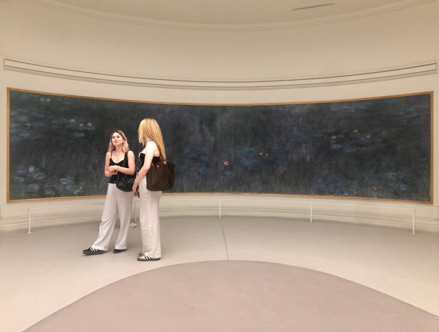 The 100 metres of water lilies divided over eight canvasses that Monet painted towards the end of his life for the Orangerie are hanging there now for almost 100 years. And like all great art they seem timeless. They haven’t aged. The only thing that has changed over the years is the appearance of the visitors.